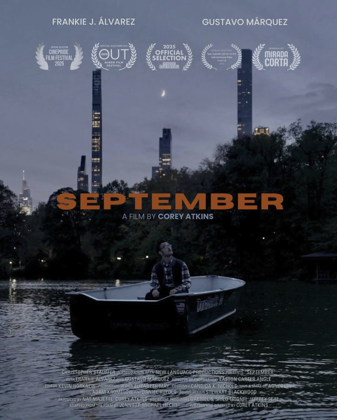 In September, we experience one man’s twenty-year journey of remembrance — and reckoning. As he takes in the the life and connection around him from a rowboat on Central Park Lake, he remembers the deep love he found, then ran from, when faced with the specter of AIDS. As night falls, he comes to accept that grief and regret are like the seasons: they shift and change — but they are always there.